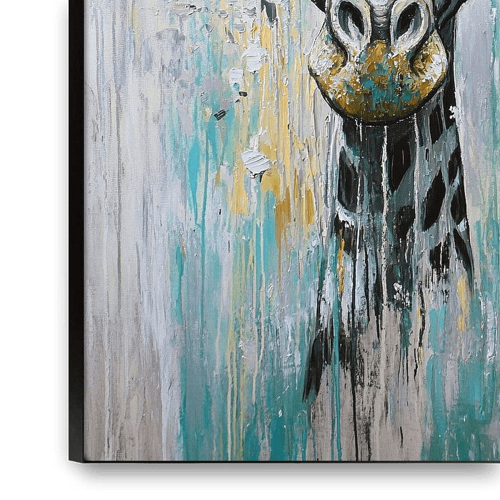 This colourful painting of a giraffe is a unique artwork that stands out for its abstract and dynamic style. The combination of vibrant colours and expressive brushstrokes gives the work a modern and playful character. The subject, the giraffe, comes to life in a mix of paint that seems to drip onto the canvas. This makes it a perfect…