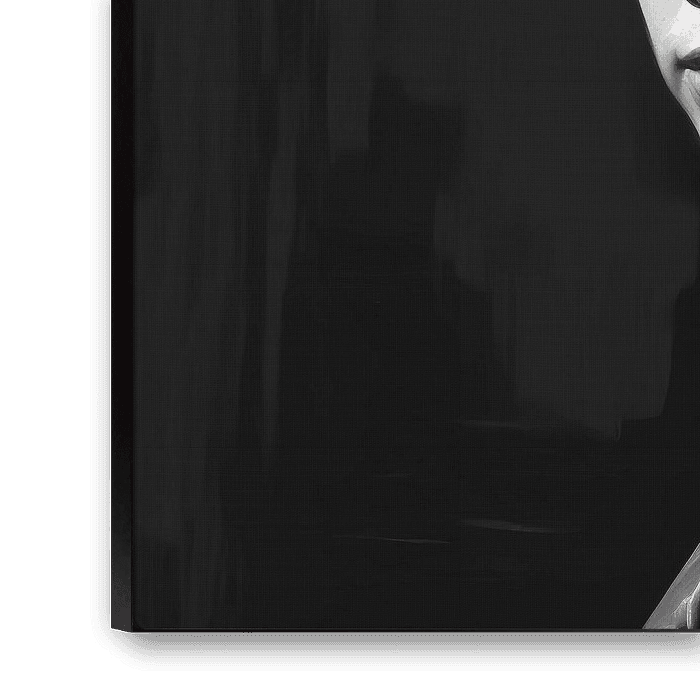 This is a contemporary adaptation of the famous painting "The girl with the pearl earring" by Dutch painter Johannes Vermeer. The 17th-century original has been reinterpreted into a digital artwork in black and white. The adaptation retains the subtle and refined character of the original work, but brings it into a modern context. The scene has been re-edited with digital techniques and the colours have been replaced with a dramatic black-and-white combination, giving the original emotion and sophistication a new dimension. The result is a fascinating modern interpretation of a classic masterpiece.