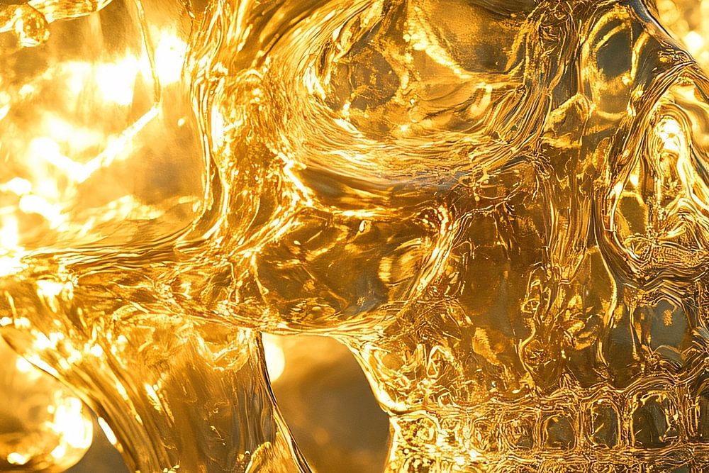 This unique glass skull radiates a warm, golden glow, making it a striking art object for any interior. The design combines abstraction with a futuristic look and offers a mysterious, almost ethereal feel. The golden hues and transparent glass create a fascinating play of light and shadow, making the skull glow in a dark space. Perfect as a decorative item in a modern living room, bedroom, or office space. A true showpiece, this glass skull is sure to attract attention and add an artistic flair to any interior.