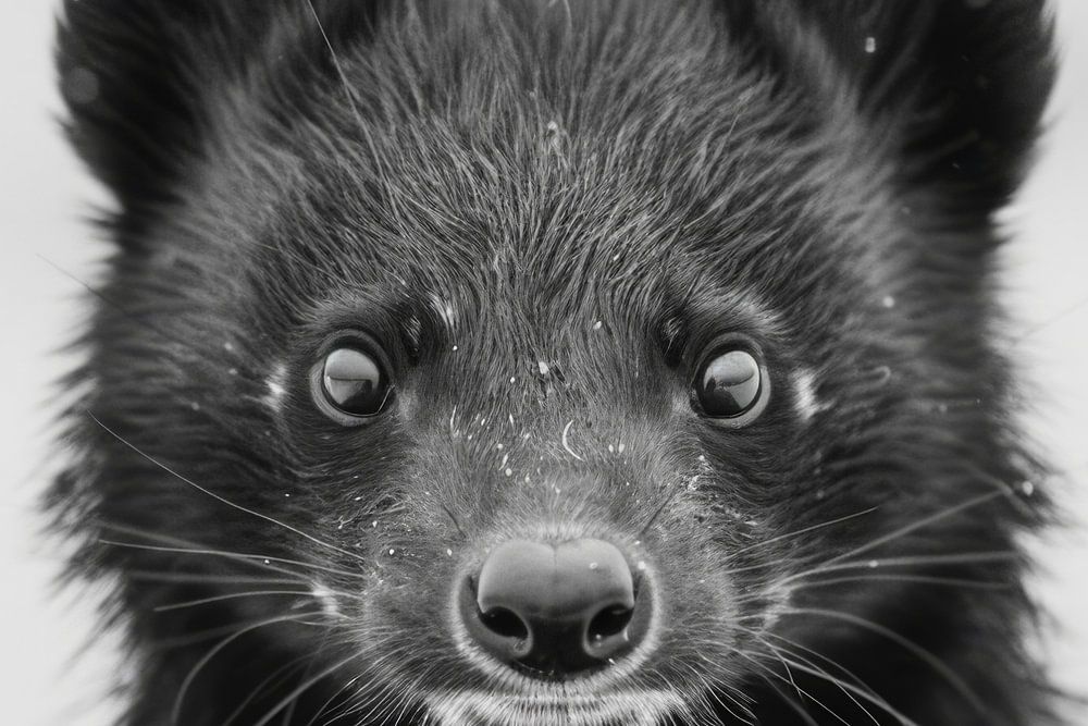 This impressive black and white portrait of a wolverine captures the fierce determination and striking features of this rare animal. The fine details of the dense fur and the penetrating gaze give the image a special depth and intensity. Ideal for nature lovers and art collectors, this artwork will bring a powerful and mesmerising touch to your living or working space.