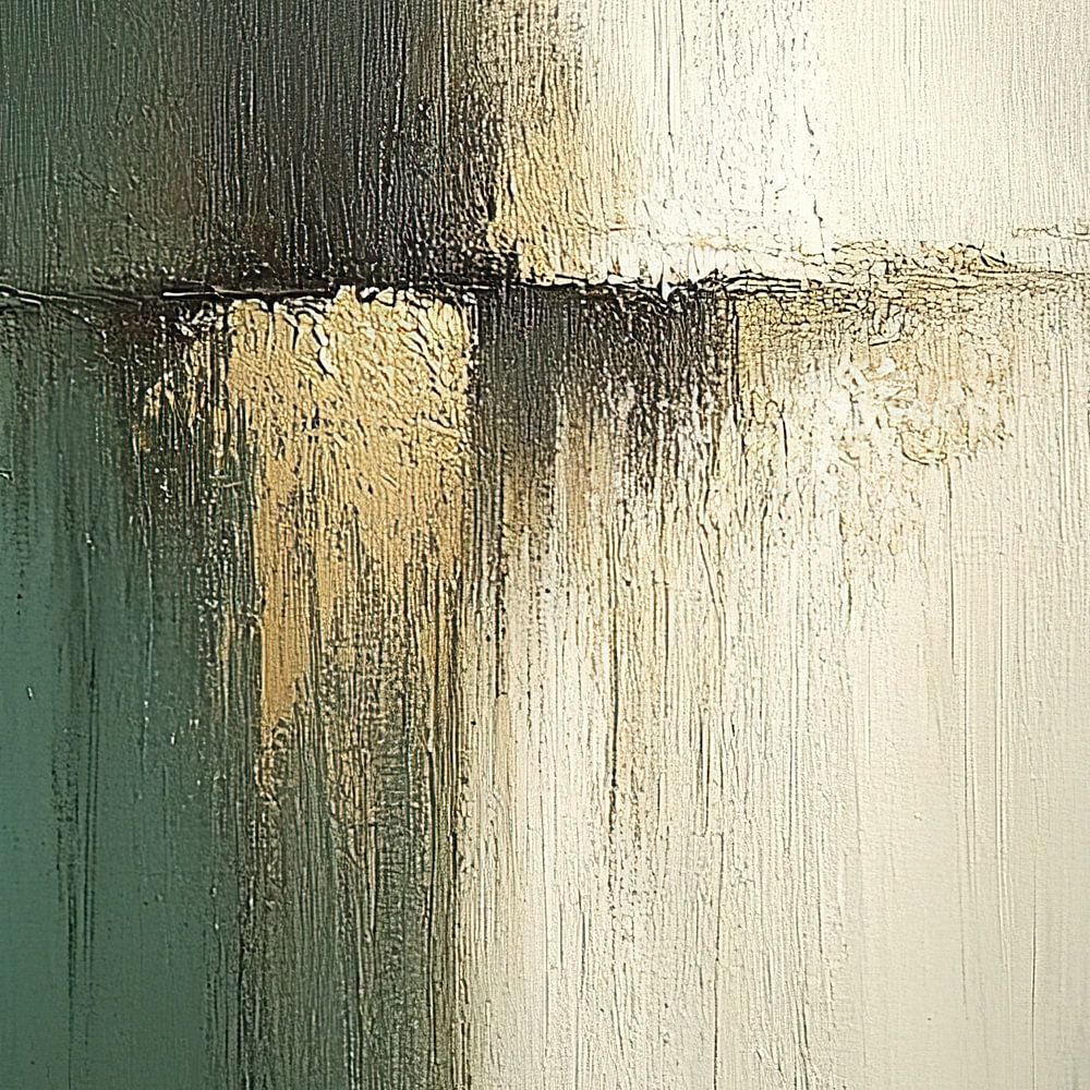 Details: abstract, gold, green, white, texture, painting, art, modern art, connection, separation