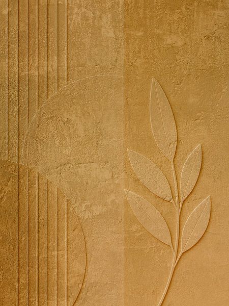 About ‘Golden Botanical Relief - Abstract Leaves in Ochre and Texture’ by STUDIO ARTSY