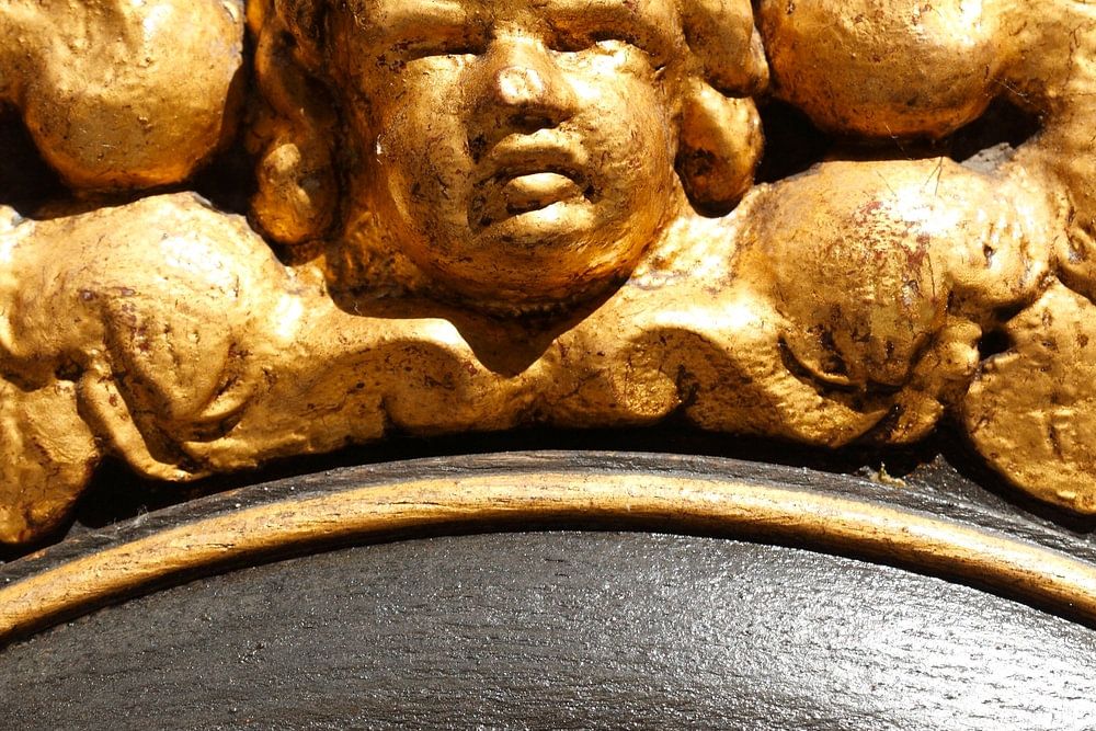About "Golden Putto at the side portal of the Nikolaikirche, Old Town, Stralsund, Mecklenburg-Western Pomer"