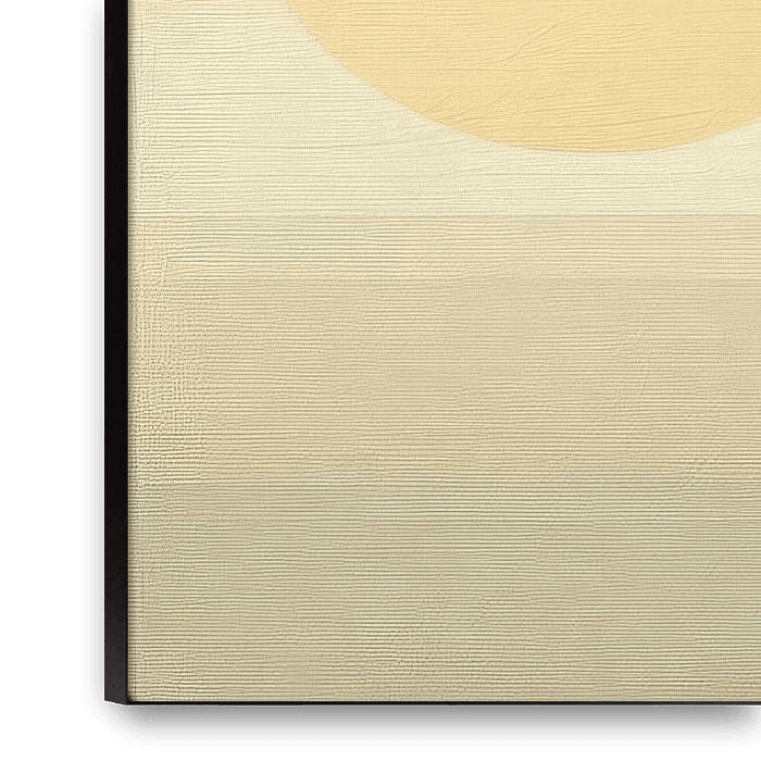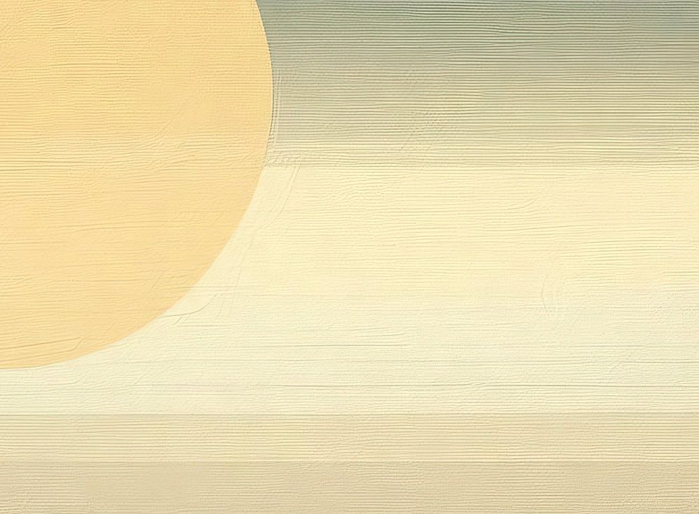Golden Calm | Calm Beige Harmony - This is an abstract painting with a calming composition consisting of a large golden circular element centred against a soft background with horizontal layers of neutral tones ranging from light grey to beige, creating a sense of calm and serenity.