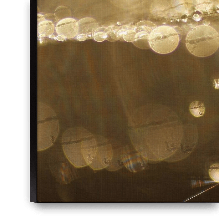 Droplets in a spider's web turn into a fascinating image with bokeh spheres with the macro lens and the right lighting.