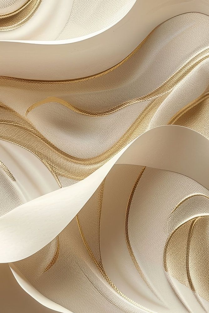 Be enchanted by the flowing lines and golden accents in this work of art. A graceful dance of soft waves and delicate textures, as if you were watching an elegant interplay of silk and light. This beautiful piece exudes luxury and tranquillity, and will give any room a stylish and sophisticated look. The subtle golden tones add a touch of glamour without being overwhelming. A timeless design that you can admire again and again. Perfect for those looking for a serene yet dynamic addition to their interiors. Let this artwork adorn your wall and create an atmosphere of elegance and class in your home or office.