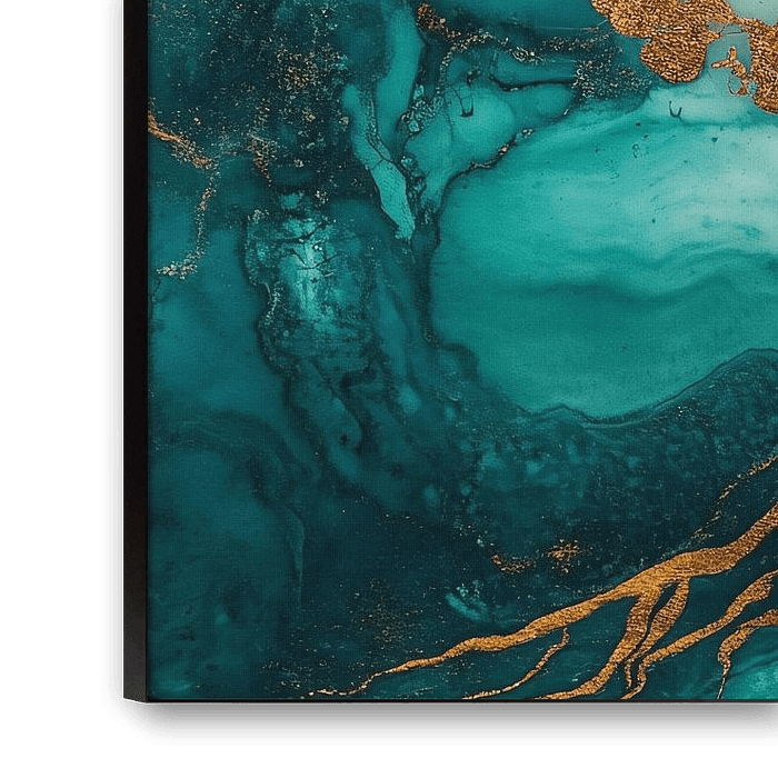This beautiful design depicts an abstract tree of life, with golden leaves and roots, against a background of brilliant shades of turquoise. The flowing shapes and delicate gold details create a sense of luxury and serenity. The design exudes elegance and fits perfectly into modern interiors, especially in spaces such as a living room…
