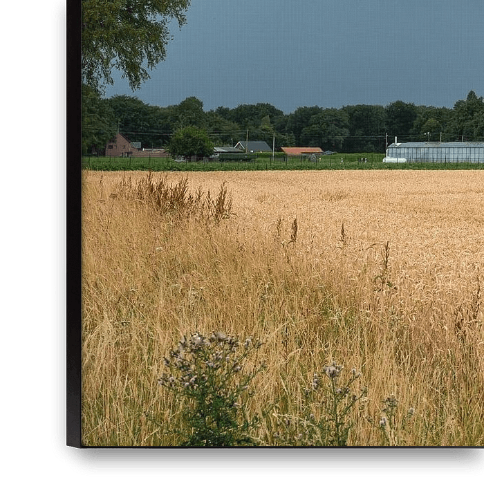 In the foreground are the beautiful golden wheat fields. But in the sky hangs a huge thundercloud. I would get this one over me moments later as I cycled across the German-Dutch border.