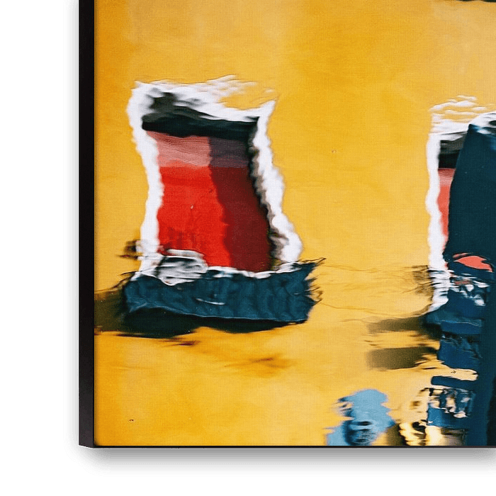 Buy the photo Gondolas reflected in the canal by Andreas Müller on canvas, ArtFrame, poster and wallpaper, printed on demand in high quality.