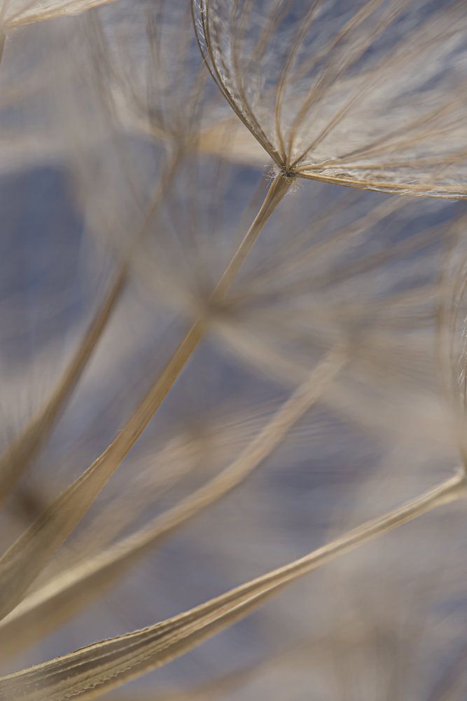 "Good morning Morning Star! Fluff on a Tragopogon" is a macro photo of part of the fluffy bulb of a Tragopogon. This plant/flower is also called Morgenster in the Netherlands. Like the dandelion, a Morgenster belongs to the Composite family. When the flower has finished flowering, a beautiful ball of fluff arises. As you can see in this photo, the fluff of the Morning Star has a different structure to that of the Dandelion.