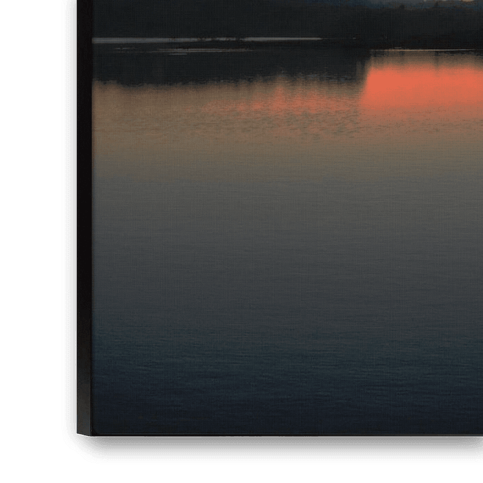 Black silhouettes of plants are visible in the foreground, contrasting sharply with the colourful sky and calm water. The contrast between the intense colours of the sunrise and the dark shapes of the flora creates a powerful, visual balance.
