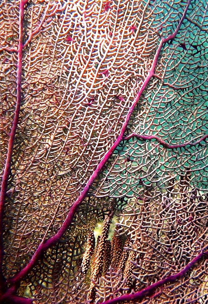 This is a Gorgonian. There are different species. The magnificent Gorgorian fans are always perpendicular to the flow of water. A work of art by Mother Nature.