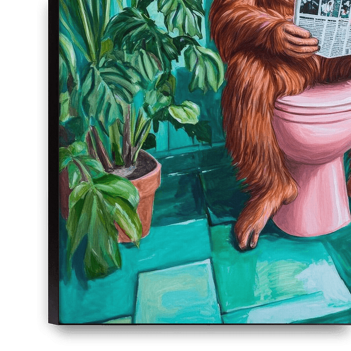 Buy this digital art artwork Gorilla on the toilet with newspaper by Poster Art Shop as a reproduction on canvas, ArtFrame, poster and wallpaper, printed on demand in high quality.