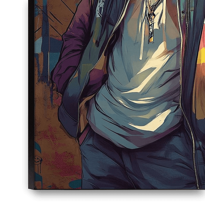 Graffiti Lion - This graffiti painting shows an impressive lion with a cool hoodie and a confident attitude, surrounded by bright colours and abstract shapes that emphasise the modern art style.