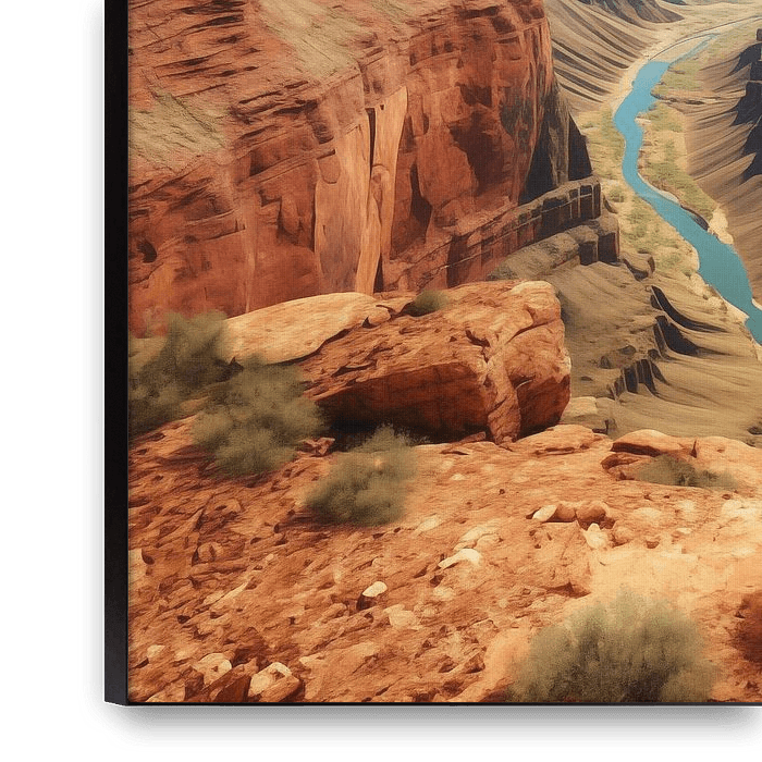 Grand Canyon Arizona painting takes you to one of the most impressive landscapes in the world. This artistic work shows the immense depth, vivid rock layers and natural shapes of the Grand Canyon in a warm, expressive way. The scene is enriched with colourful patterns in the form of flowers, subtly incorporated throughout, creating a…