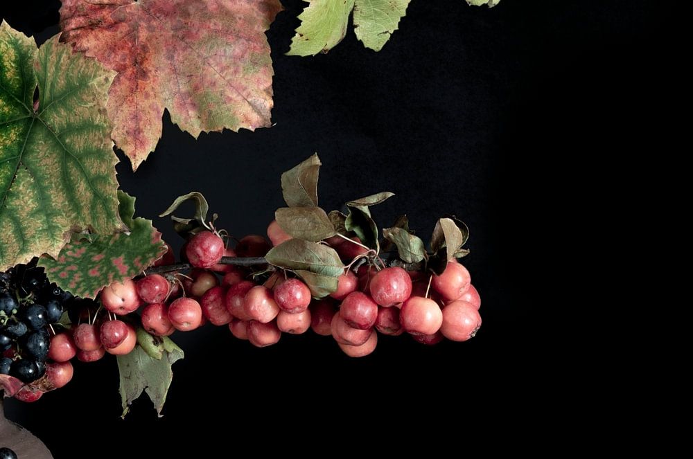 In the photo style old masters, I try to take you back into the atmosphere of history. I was inspired after a visit to the Rijksmuseum. Flowers, vegetables and fruits have been a source of inspiration for artists and also for me for centuries. I find vases for my photographs at markets and second-hand stores. the berries, flowers, vegetables and fruits come from my vegetable garden or the arboretum. The new master pictures have a classic look, but can also be easily incorporated into a modern interior.