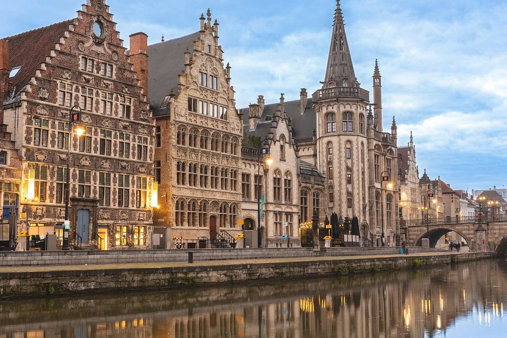 Graslei with the towers of Ghent by Marcel Derweduwen