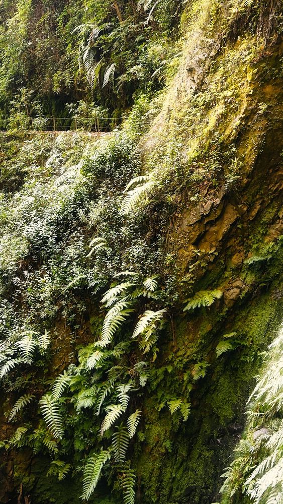 This photo shows Madeira's lush, green nature, with ferns, tropical trees and rippling waterfalls. The image captures the magic of the jungle, where sunbeams fall through the canopy and tiny droplets of water sparkle in the light. Small details like the meandering streams, moss-covered rocks and the play of shadows between the leaves…