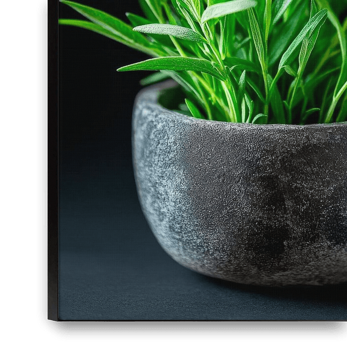 Simple elegance shines in lush green, while the filigree leaves of a plant radiate lively freshness. The rustic pot made of dark material provides a warm contrast and creates a harmonious atmosphere. Ideal for the living room or kitchen, this element brings nature into the home and creates an inviting atmosphere.