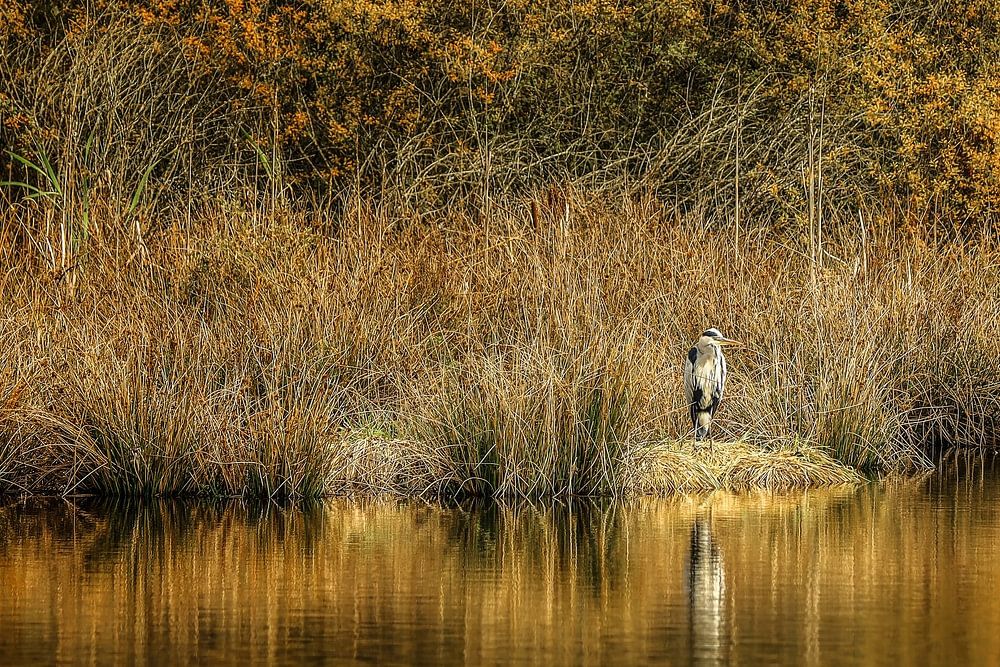 Grey heron on the banks of the Schwenninger Moos near Villingen-Schwenningen on an autumn day