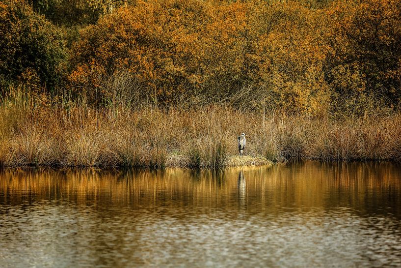 Buy this bird art Grey heron on the banks of the Schwenninger Moos near Villingen-Schwenningen by BlattArt - Christine Horn on canvas, ArtFrame, poster and wallpaper, printed on demand in high quality.