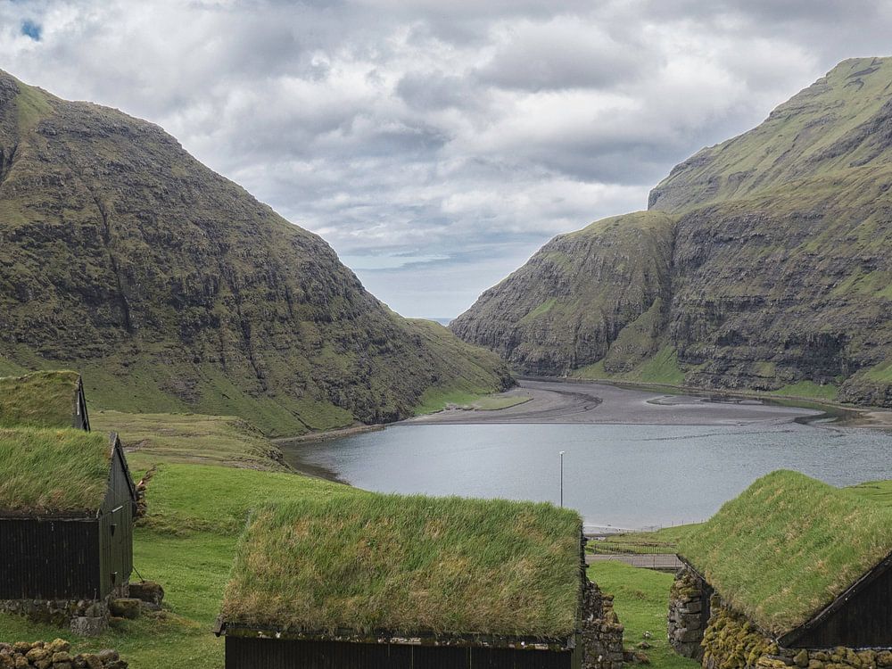 Saksun is een dorpje op de Faeröer op het eiland Streymoy. Het weggetje ernaar toe is al prachtig. Aan het einde van de weg bereik je Saksun en haar fjord. Het bijzondere van de fjord is dat deze elke dag twee keer vol en leegloopt, zoals wij kennen van de Waddenzee. Je kunt dus ook twee periodes per dag over de bodem van de zee naar de monding van de fjord wandelen. Heel bijzonder over het zwarte zand.