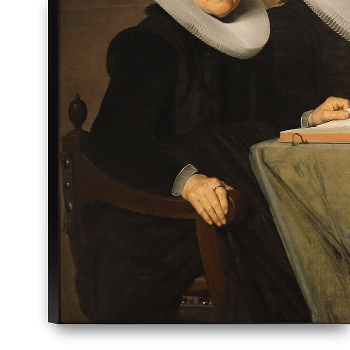 Group portrait of the regents of the St Elisabeths or Groote Gasthuis in Haarlem, Johannes Cornelisz. Verspronck The St Elisabeths Gasthuis was the oldest hospital in Haarlem. From the beginning of the 17th century until 1971, this hospital was located on the corner of the Gast-huisvest and the Groot Heiligland (opposite the Frans Hals Museum). The regents of the Elisabeths Gasthuis had their portraits taken by Johannes Verspronck in 1641. It was his first large group portrait. Frans Hals made the portrait of the regents. In Verspronck's painting, a bed in the infirmary is visible through the open door on the right. The tablecloth was originally blue. Original size: 210x150
