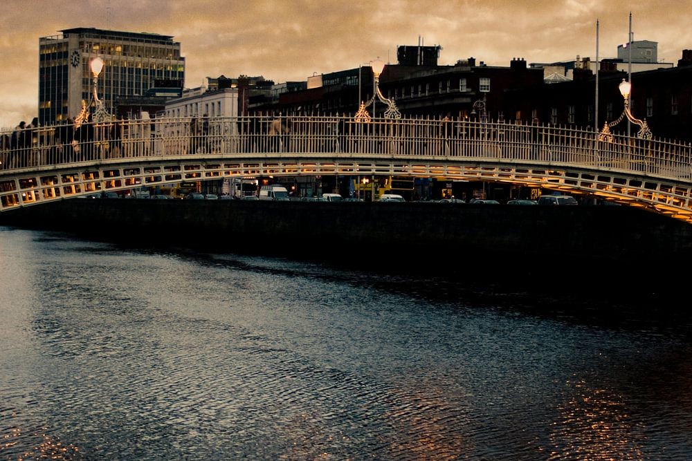 The Ha'penny Bridge over the River Liffey is a symbol of Dublin. Its name comes from the toll that was levied there for a hundred years: half a penny.
