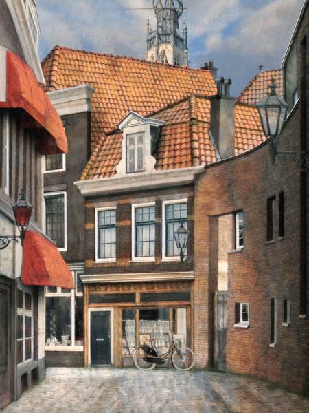 Haarlem, the red-light district Korte Begijnenstraat in watercolour style