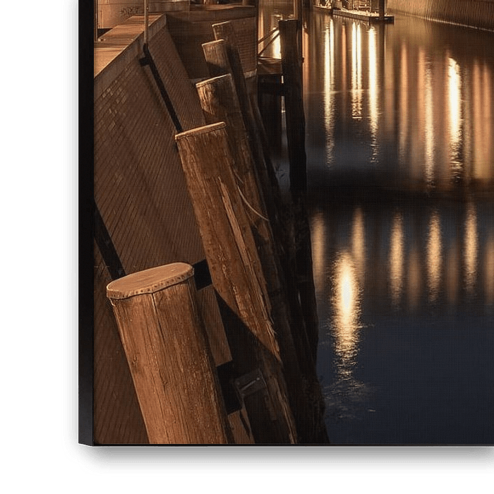 The Speicherstadt by night - a place full of history and stories between the inland harbour and Brooksbrücke. Warm light on red brick, calm water, glowing water reflections and famous attractions.