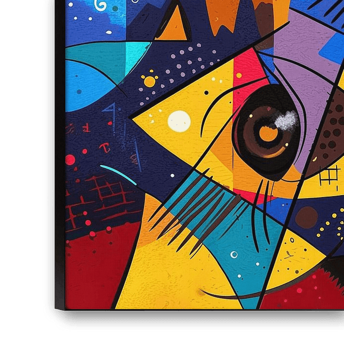 Details: abstract, colourful, face, eyes, art, bright colours, modern art, playful, dynamic, geometric