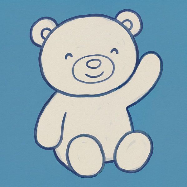 An illustration of a sitting teddybear. A minimalst art work in blue.