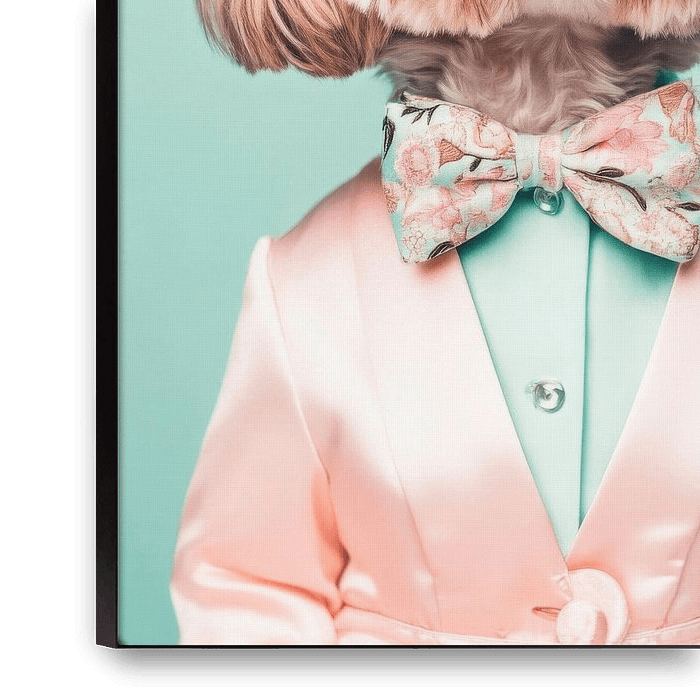 In sequinned elegance, this Havanese with his impressive hairstyle and cool sunglasses exudes a touch of glamour. The stylish suit and playful bow tie give him a charming, almost aristocratic look. A true trendsetter in the dog universe, he is determined to take centre stage and attract everyone's attention.