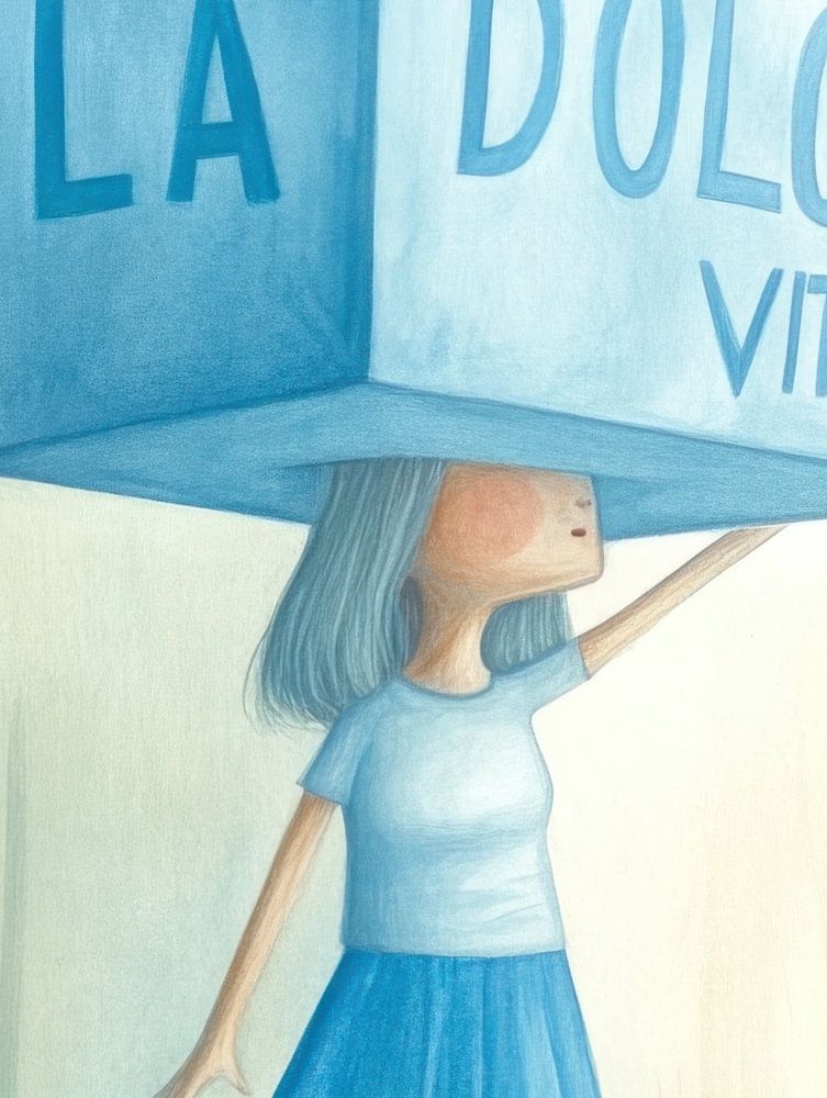This colourful and modern artwork is characterised by expressive shapes and bold colour contrasts. The letters 'la Dolce Vita' add Italian flair. The head is filled with sweet life. With a palette of bright shades of blue, it brings energy and visual appeal to any space. The painted letters and shapes give it a contemporary look that fits well in modern interiors. Summer is coming into your living room.