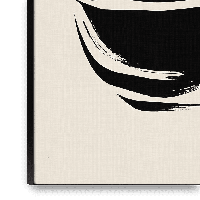 This minimalist brush line art motif shows a stylised coffee cup from which a delicately drawn heart rises - a symbol of warmth, enjoyment and small everyday moments that make life more beautiful. The bold black brushstrokes on a beige background give the picture a calm, handmade aesthetic that is both modern and timeless.