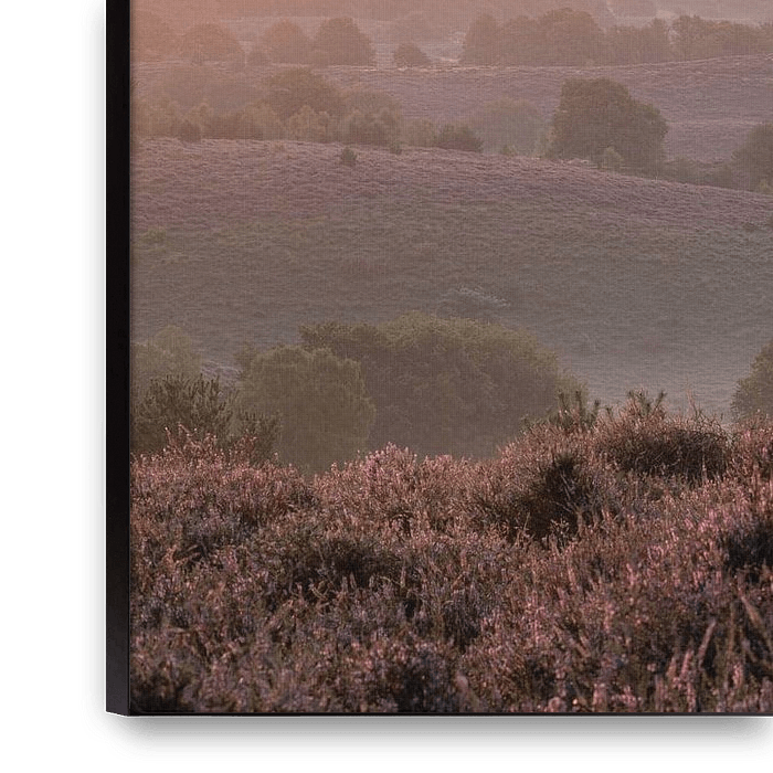 Buy this landscape artwork Heather in bloom at sunrise by Alvin Aarnoutse on canvas, ArtFrame, poster and wallpaper, printed on demand in high quality.