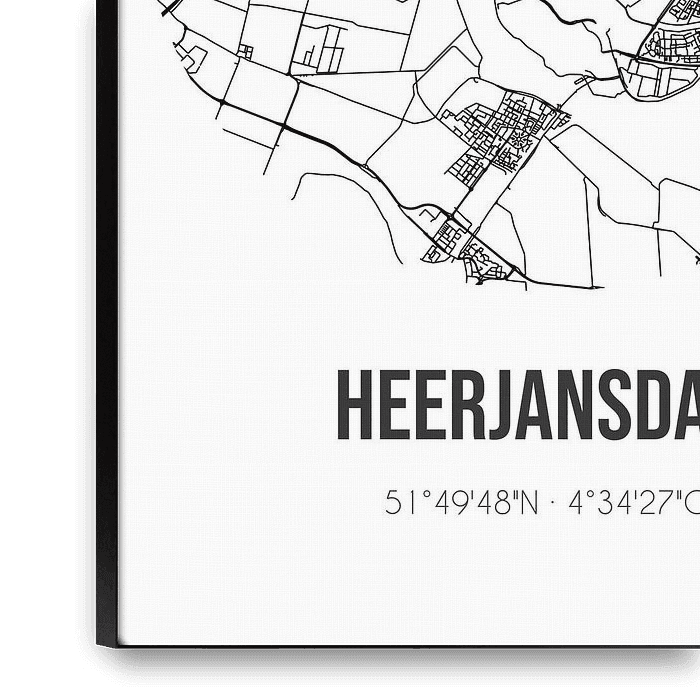 Buy this abstract artwork Heerjansdam (South Holland) | Map | Black and White by Prints of Place on canvas, ArtFrame, poster and wallpaper, printed on demand in high quality.