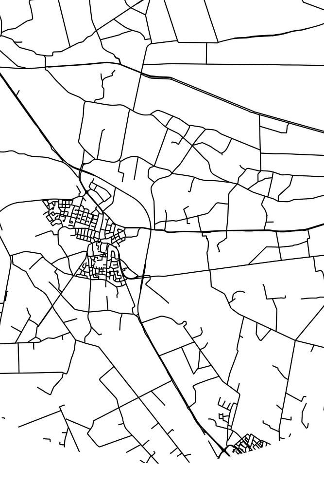 Black and white map, street map or street plan of Heino. Heino is located in the municipality of Raalte, province of Overijssel. On the city map all public roads in Heino are included. Furthermore, the map features the coordinates of the center of Heino.
