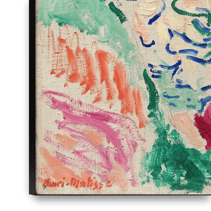 Matisse combined agile, playful composition with a bold approach to colour, radically departing from the academic traditions of his time. With his Fauvist works, in which bright colours are juxtaposed undiluted, he stood at the cradle of modern visual art. His oeuvre is relatively versatile, consisting of paintings, drawings, collages and sculptures, all of which reflect his quest for simplicity and harmony. Although Matisse is sometimes associated exclusively with Fauvism, his style evolved greatly throughout his career, from decorative portraits and landscapes to the revolutionary cutting technique (papiers gouaches) in his later years.