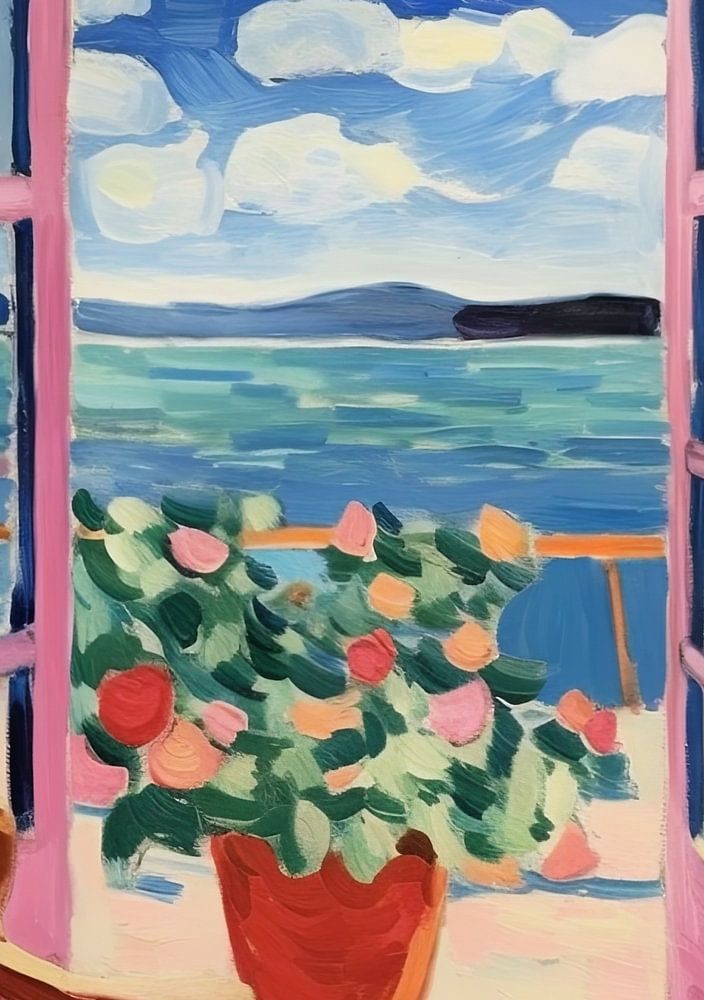 Buy this painting Henri Matisse inspires Mediterranean by Niklas Maximilian as a reproduction on canvas, ArtFrame, poster and wallpaper, printed on demand in high quality.