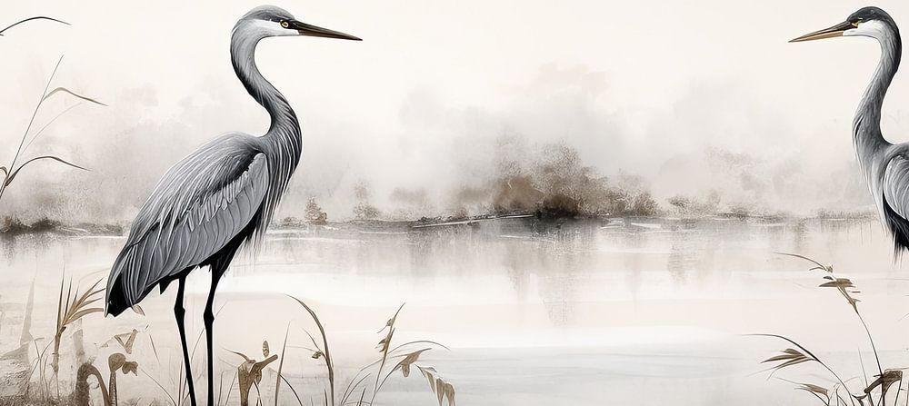 Buy this portrait Herons by ARTEO Paintings on canvas, ArtFrame, poster and wallpaper, printed on demand in high quality.