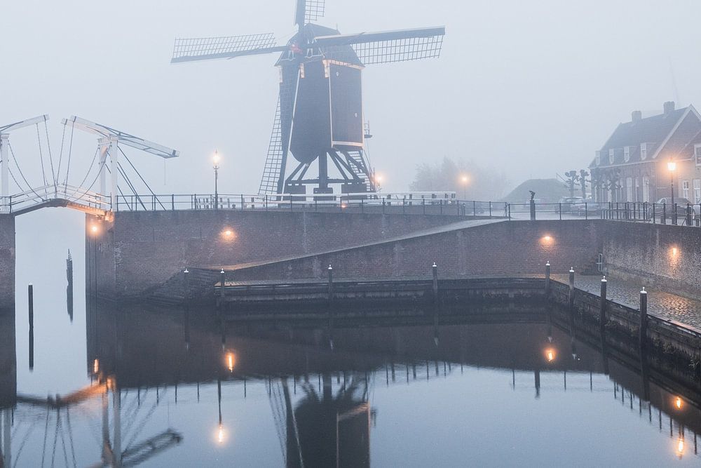 This beautiful photo, taken by photographer Sweet Pictures, shows a mysterious morning in Heusden, North Brabant. The sky is suffused with a white, misty atmosphere, giving it a mysterious and tranquil feel. The reflection of the sky on the water is breathtaking and the mill on the harbour adds a nostalgic element. The warm, luminous colours and calm atmosphere of the picture make it a fine morning in Heusden where you can take a break from the hectic world.