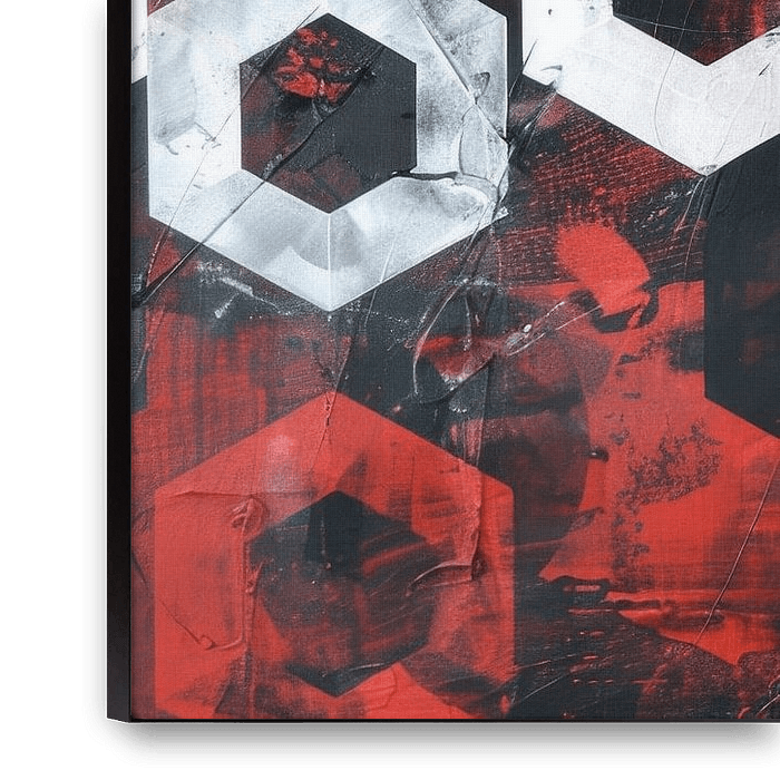 This captivating artwork utilises the structure of honeycombs to create a dynamic and energetic composition. The bold reds, blacks and greys and geometric shapes create an exciting visual play that conveys both power and structure. Ideal for abstract art lovers who appreciate bold colours and geometric designs. This piece brings modern…