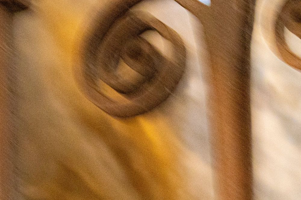 A play of iron and light, caught in motion. The graceful lines of the ironwork seem to dance, as if they have momentarily forgotten their solid form. Behind them, a soft, golden haze glows like a memory of something precious and almost forgotten.