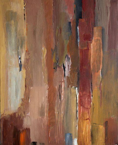 An earth‑toned abstract work built from layered surfaces and quiet shifts in color. The piece suggests hidden structures beneath the calm exterior, where muted textures and small tonal breaks hint at what lies just out of sight
