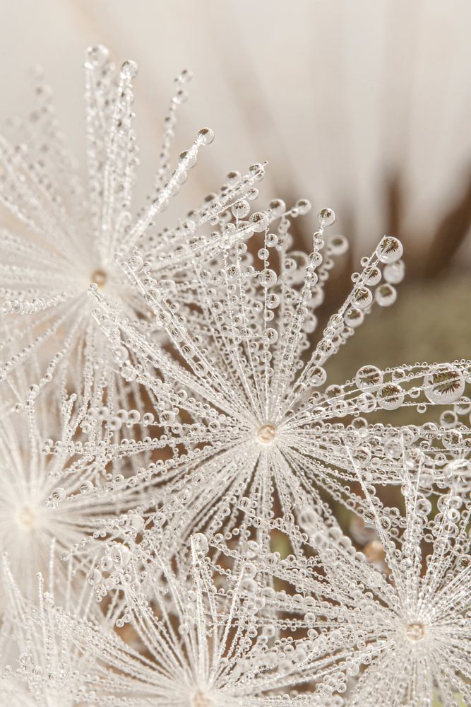 "Hiding behind the white fluff" is a macro photo of a few fluff pieces lying in front of the fluffy bulb of a dandelion. Very small water droplets lie on these fluffy balls. Because I chose a very shallow depth of field when taking this photo, you can see the front hairs and droplets of fluff in focus and the further back you go, the blurrier the image becomes. The heart of the fluff ball can be seen faintly in the background. Despite that scene being only a few centimetres in size in reality, it appears very large here and a sense of depth is also created by this depth of field. A simple calm image, which has a rural feel to me.