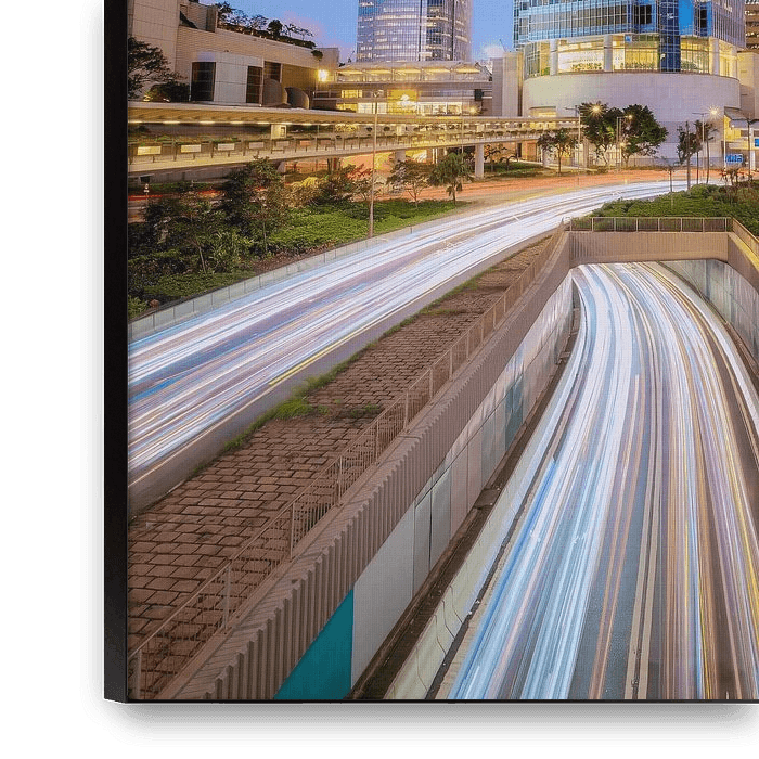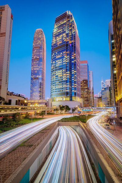 Hong Kong is an overwhelming city for us Dutch. Everything is grand, new and fast. I had figured out this location before my visit, so that standing on a pedestrian overpass I had 3 lanes of traffic passing underneath me. All three in the same direction. I wanted to take an early blue hour photo where of the passing traffic, only the…