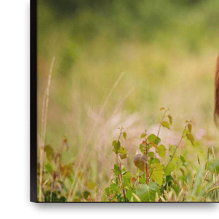 Buy this landscape artwork Highland Cattle in high grass during spring by Evelien Oerlemans on canvas, ArtFrame, poster and wallpaper, printed on demand in high quality.