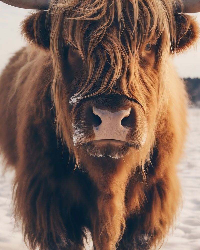 Buy this landscape artwork Highland cattle in the snow by fernlichtsicht on canvas, ArtFrame, poster and wallpaper, printed on demand in high quality.