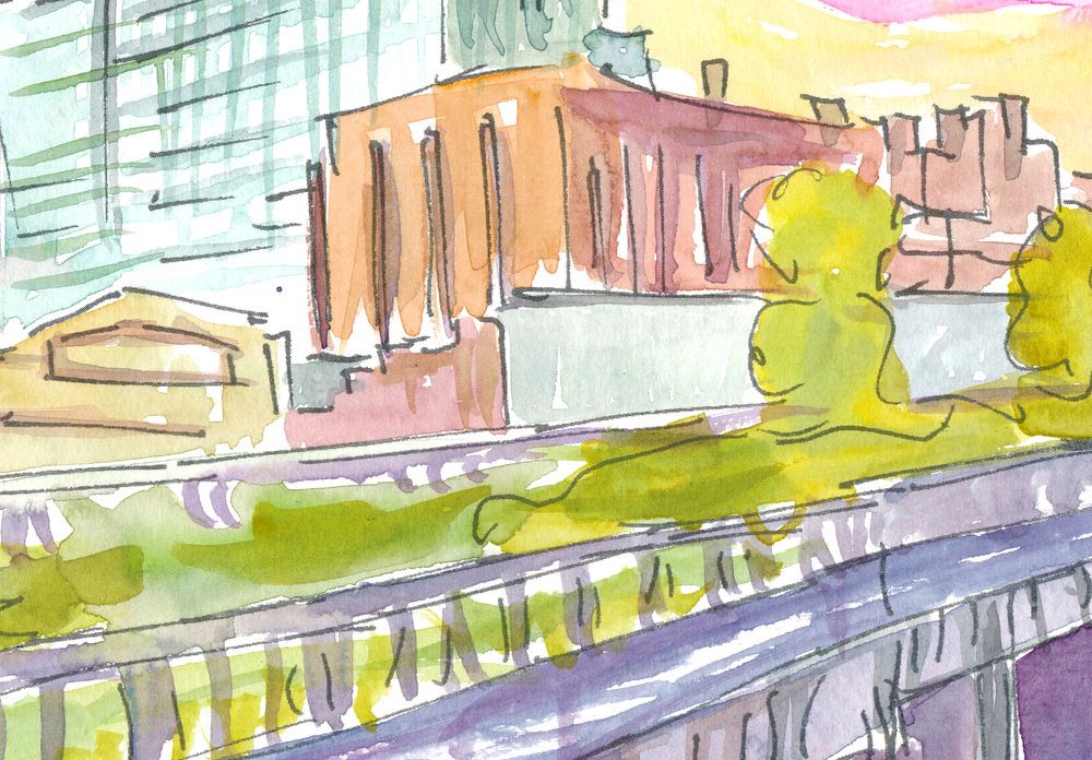 Buy this painting Highline Park New York City Walk by Markus Bleichner as a reproduction on canvas, ArtFrame, poster and wallpaper, printed on demand in high quality.